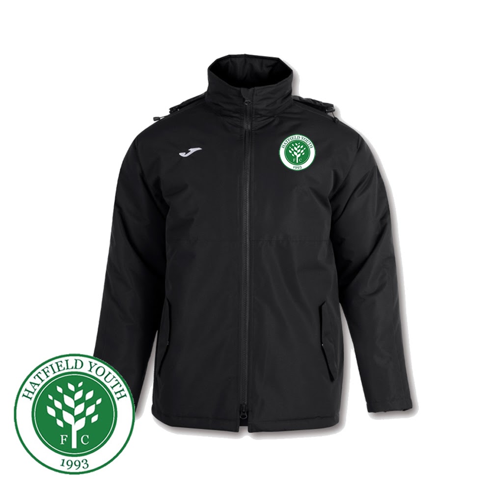 Perfect jacket to wear to or from training and matches. It will come with an embroided badge and printed initials. This has a built in hood, micro-mech inside to increase breathability and water resistant technology. This item is available for club managers, coaches and players, this includes those who are only training. This item is also available to parents and siblings.